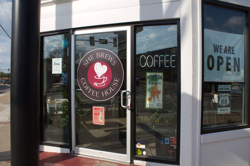 This month’s coffee crawl has brought to She Brews Coffee House in northern Tulsa, Kendall-Whittier. This coffee shop actually has two locations, with the original having been founded in Claremore, Oklahoma back in 2012. It’s unclear when the Tulsa location opened its doors, but I’ve had this coffee shop on my list for at least a year now, so I finally decided it was high time to visit.